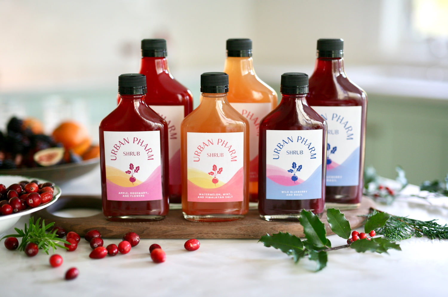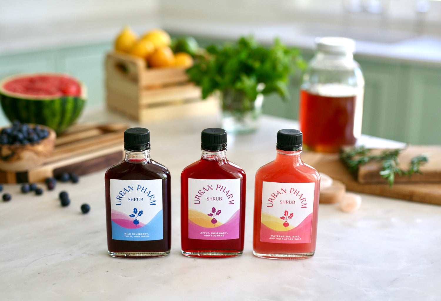 A shrub (also known as drinking vinegar) is a concentrate made of fruit, sweetener, and vinegar. Shrubs have been around for a long time, and have always been about getting creative with what you’ve got in the service of bumping up deliciousness (and preserving fruit). At Urban Pharm, we use the best and as close to the source as possible ingredients—raw honey, fruit, botanicals, and raw apple cider vinegar from Maine’s oldest operating organic apple orchard—to create shrubs that are unexpected, refreshing, bright, beautiful, healthy, and happy-making.